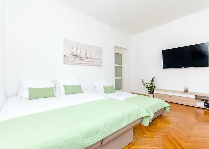 The beachfront 50 m^2 Apartment "Pomalo" is situated 17 minutes on foot from Firule and entices guests with a hot tub. Area attractions include Split City Museum, 11 minutes' walk away, and the large fortress "Diocletian's Palace" is a few minutes' drive from the 1-bedroom apartment.